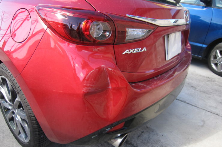 栃木県マツダアクセラ車のキズ鈑金承りました